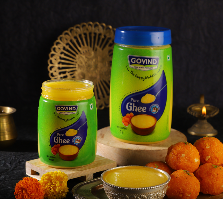 In addition to its health benefits, cow ghee also adds a rich, nutty flavour to dishes and can be used in cooking, baking, and as a spread. In conclusion, cow ghee is a highly beneficial and versatile ingredient that has been used for centuries in Ayurvedic medicine for its health-elevating properties. Using pure cow ghee, or organic cow ghee, is an excellent way to add essential fatty acids, vitamins, and antioxidants to your diet. Govind Milk, as a pioneer in the Indian dairy sector, offers high-quality, pure and organic cow ghee, which will definitely be a great addition to your diet.